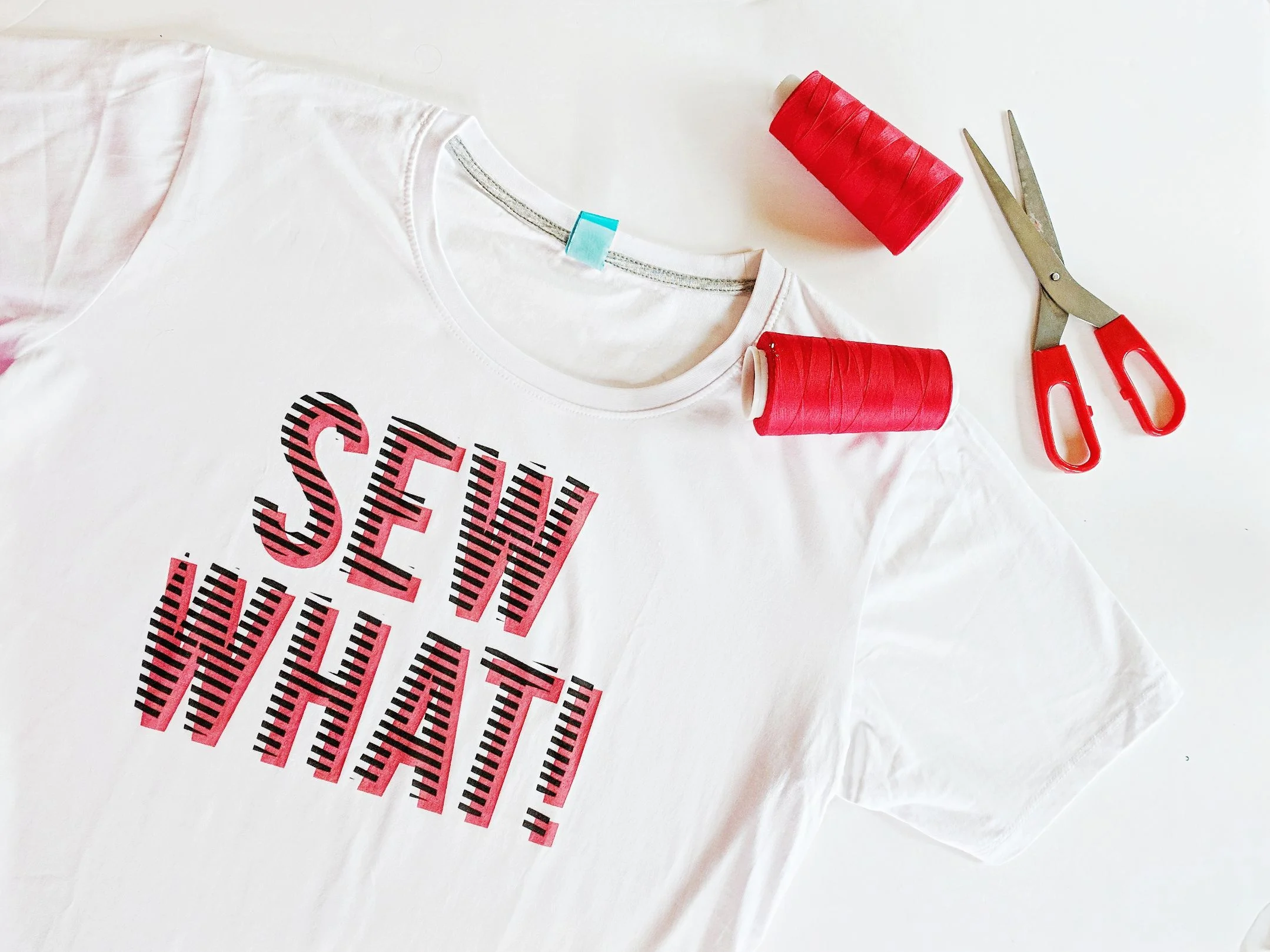 It has this cool 90’s vibe that I love. The design is so different from other sewing t-shirts that I’ve seen and I like that its a more modern look of what sewing is in today’s world is comparison to my mother’s or grandmother’s time.