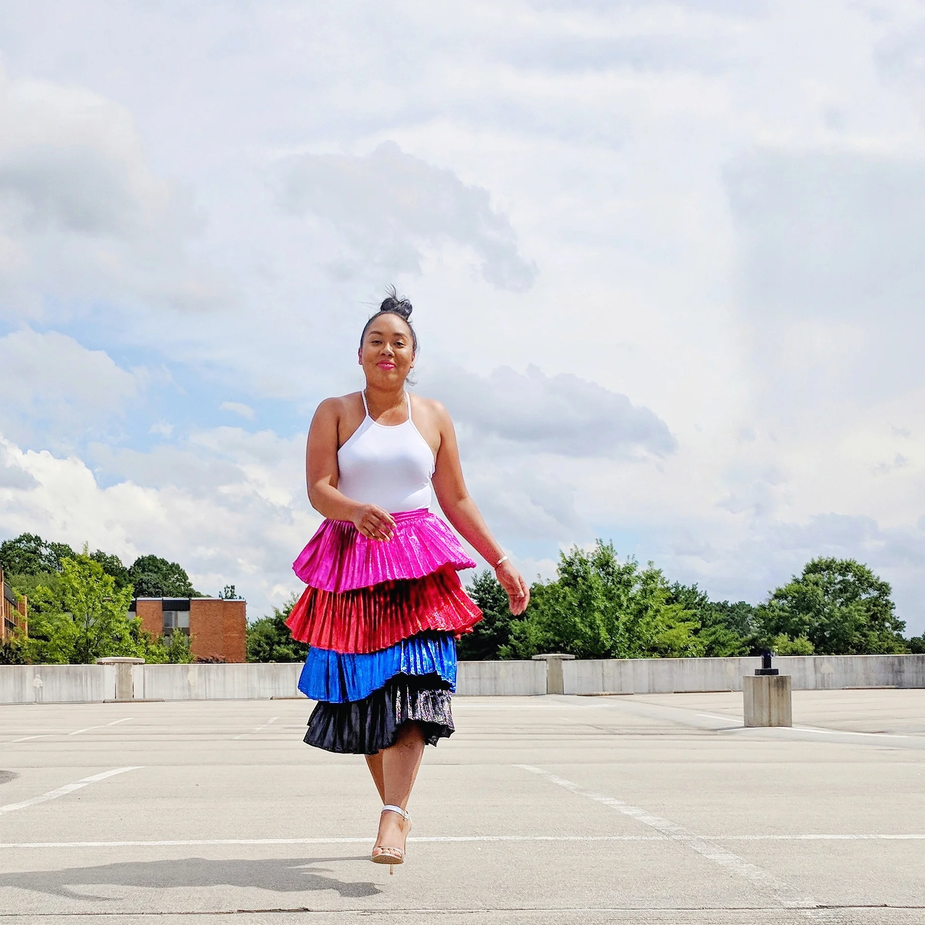 My mouth literally dropped open when I saw this skirt. Once I found out who designed it, I ran to the website and noticed that it wasn't even for sale anymore. Not that I would be able to afford it or anything, but if I could, my poor heart would be so extremely sad. BUT on the bright side, I CAN SEW! YAY! And so, I recreated the skirt in my own way. I wish I was able to find pleated fabric for this look, but unfortunately, so I had to hand pleat the fabric myself. #ImNotAboutThisLife