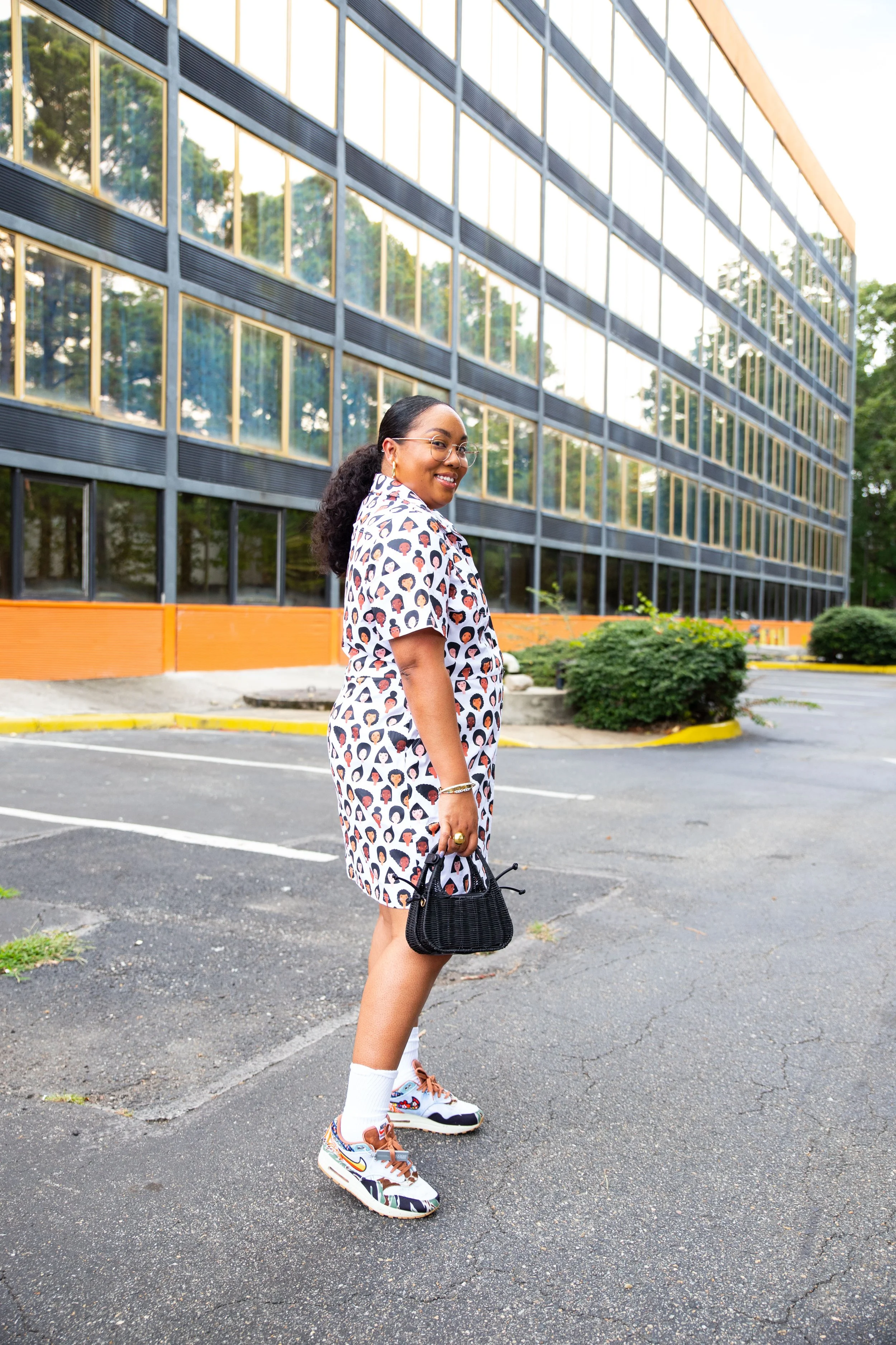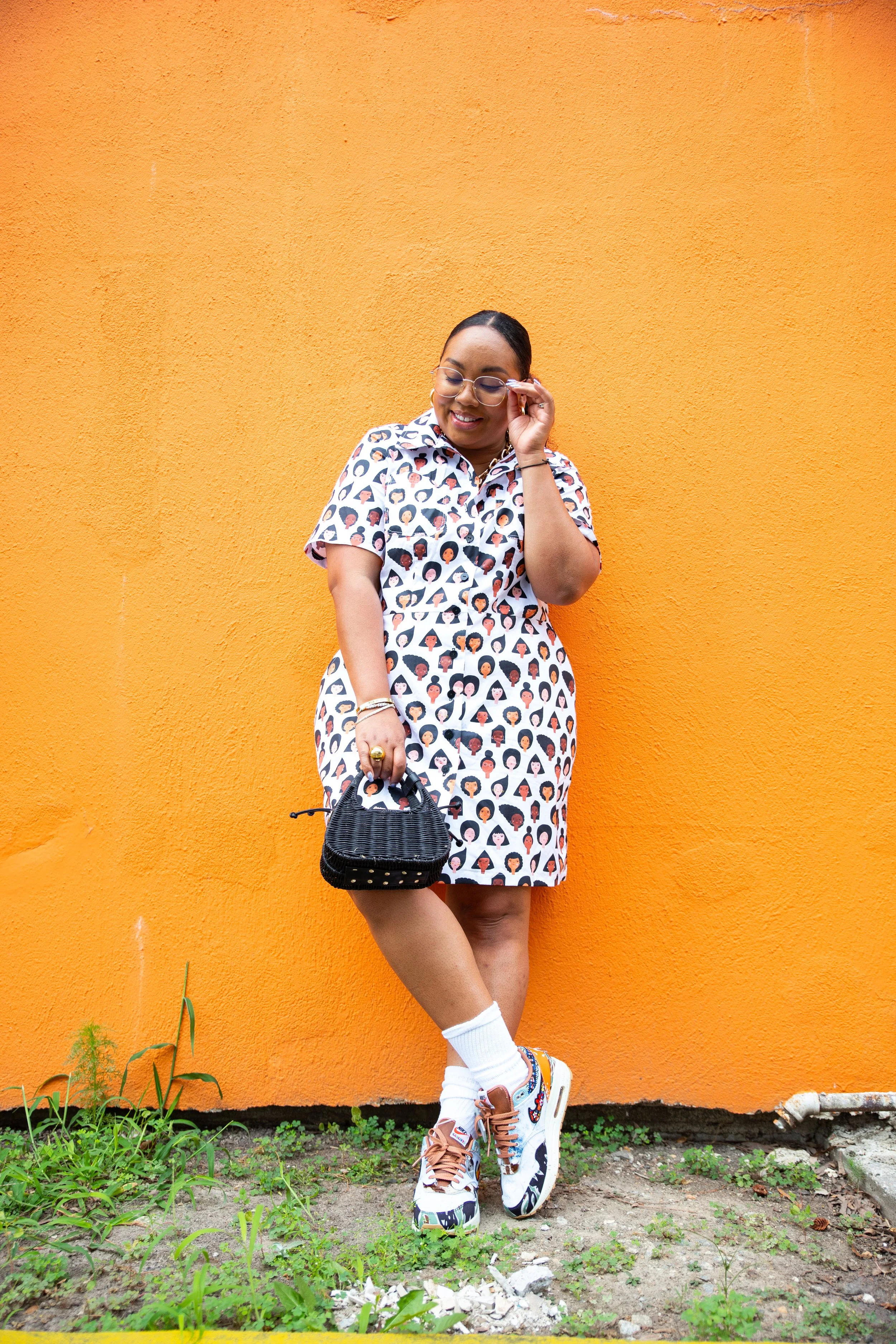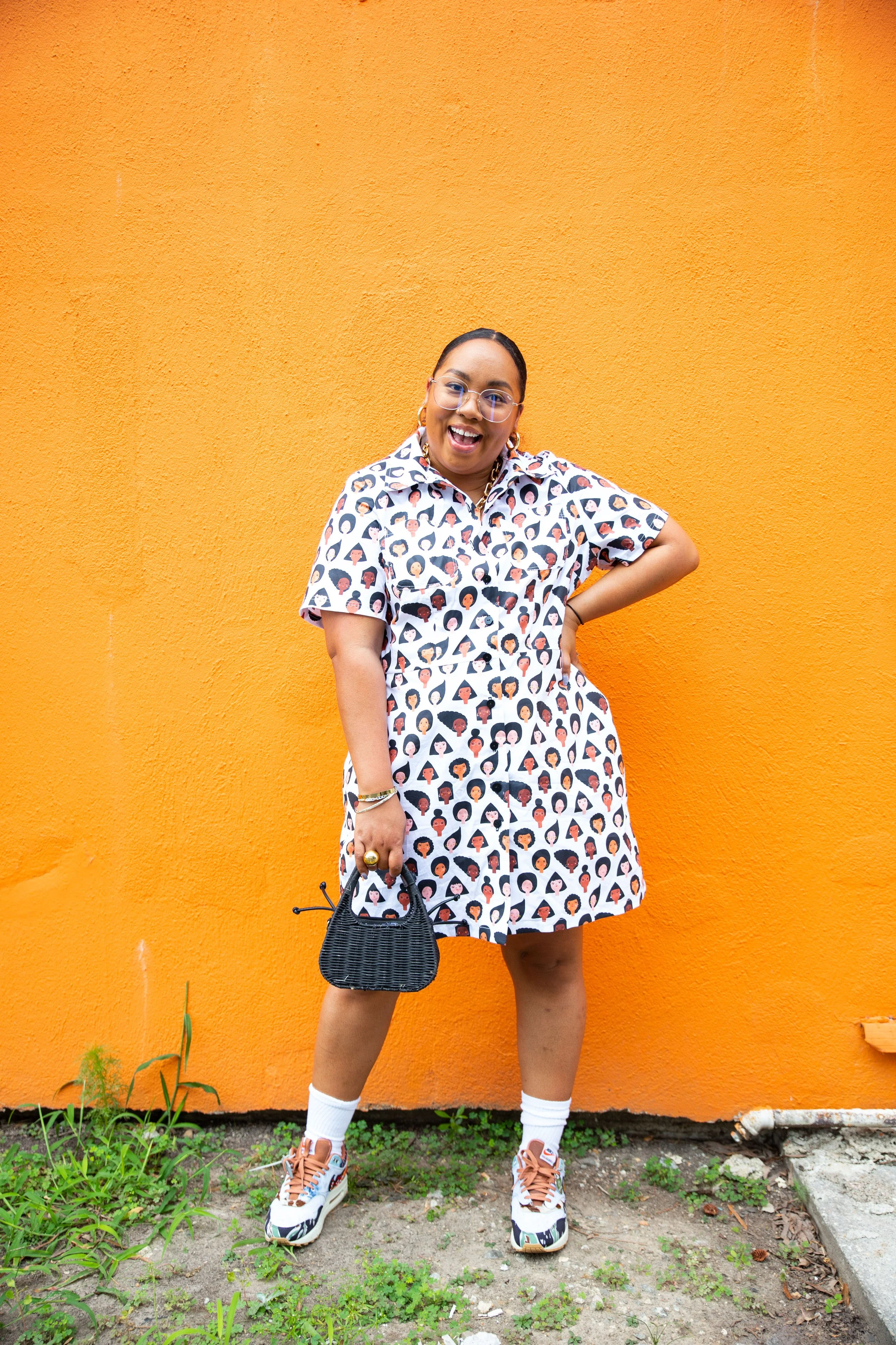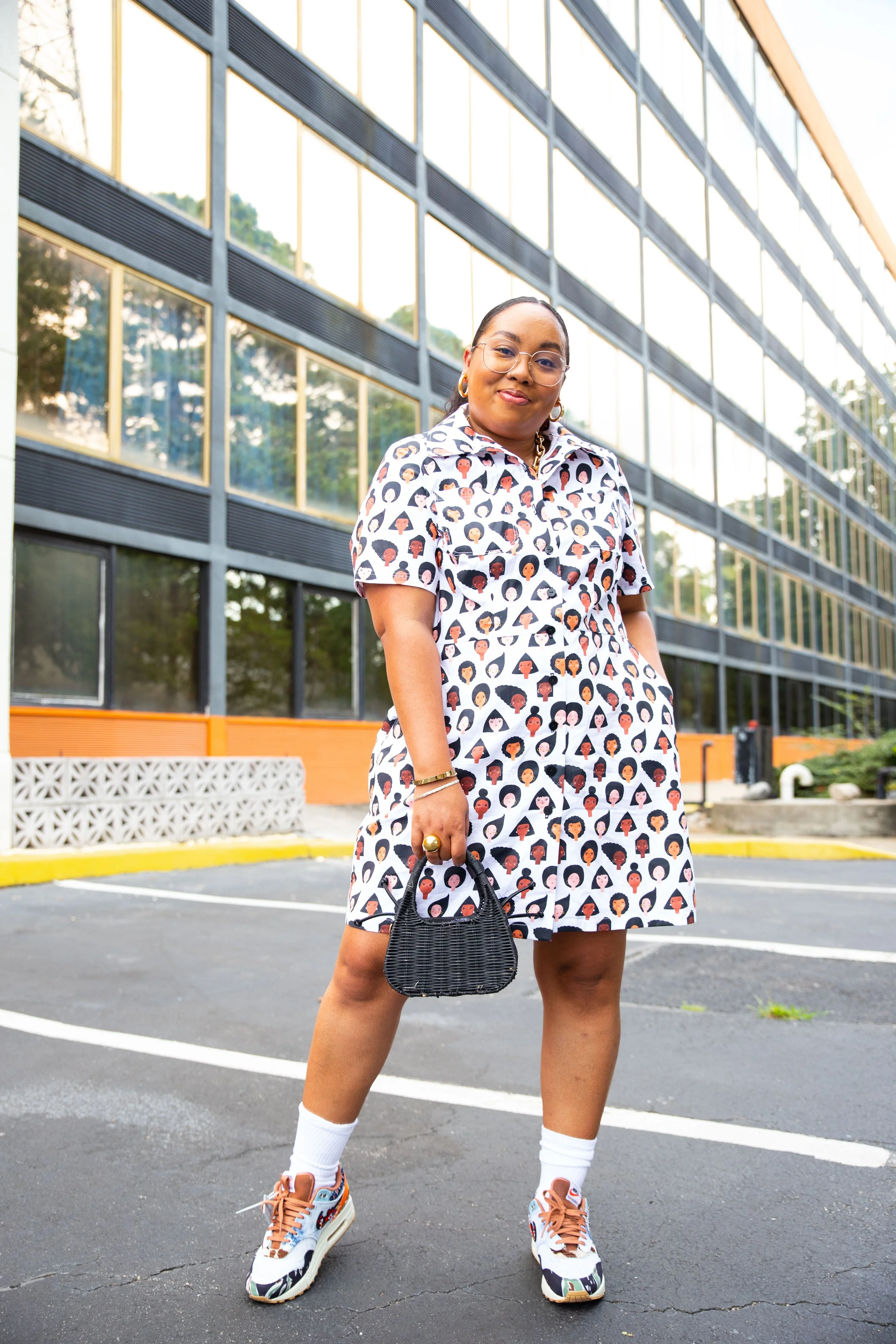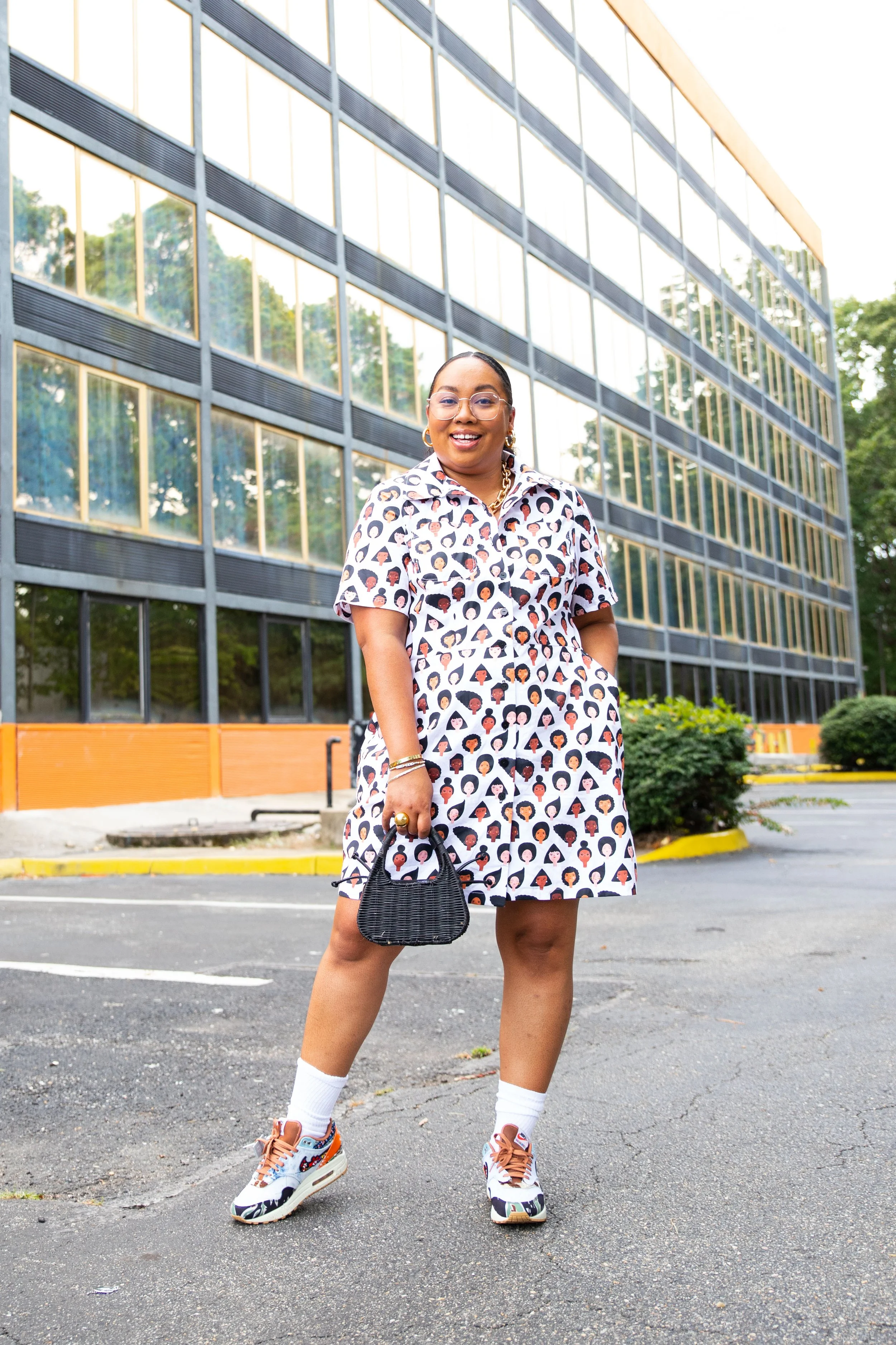 The best way for me to share the fun, playfulness of this fabric is with a casual button-up dress. You all know that I love a good statement piece, so although this dress is casual, it still does the job of being a WOW factor. Am I right?!