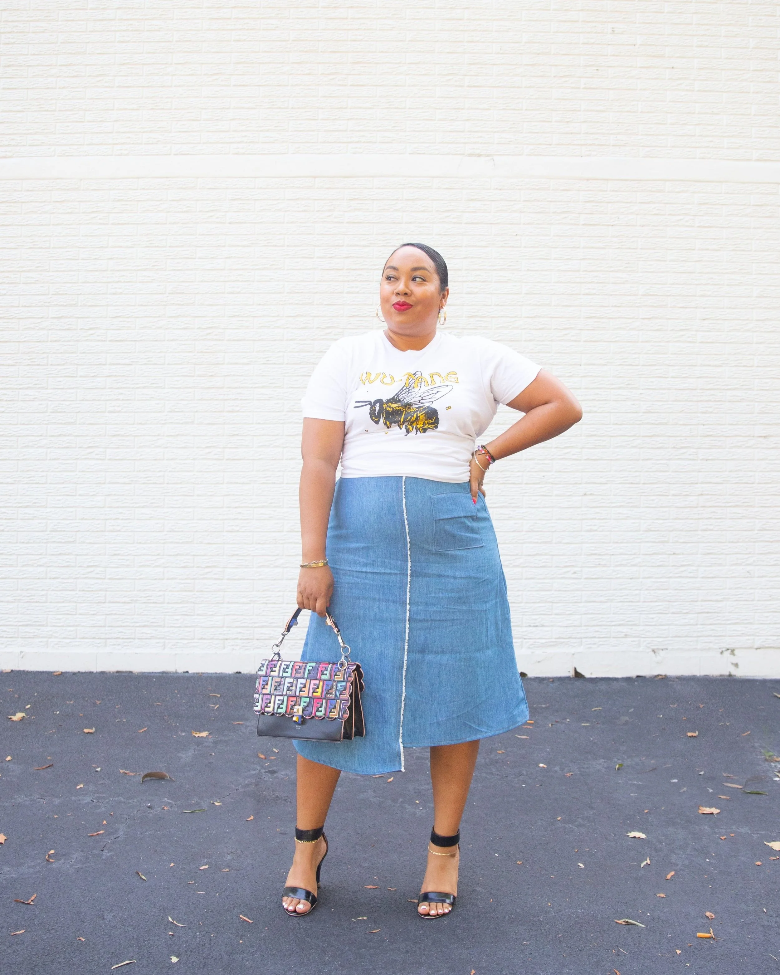 This fabric was perfect for my asymmetrical hemline denim skirt that exudes a relaxed yet undeniably chic vibe. I couldn't help but be captivated by the way those trendsetters effortlessly owned the denim trend, and I knew I had to create something that channels that same level of cool. The asymmetrical hemline adds a playful twist, making it a true head-turner. With every stitch and detail carefully curated, this denim masterpiece pays homage to the fashion girlies who inspire us all.